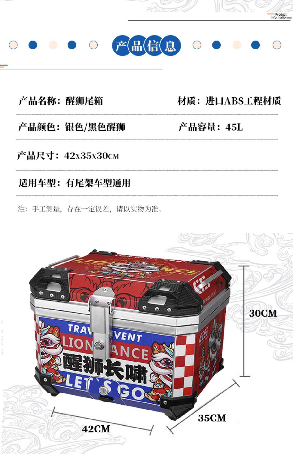 ABS Tail Case 45l Công suất lớn Xe máy Scooter Xe điện Tool Case Tháo dỡ nhanh Trường hợp đuôi không hợp kim nhôm lớn