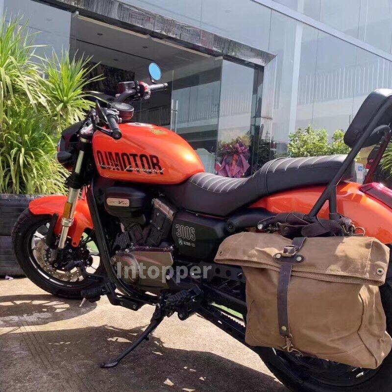 Vintage Men Motorcycle Backpack Waterproof Canvas Leather Retro Rear Seat Bag Motocross Saddlebags Biker Se Bag Brown