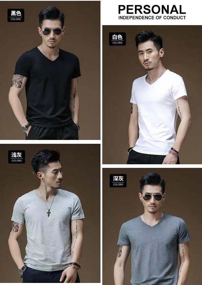 3vyy phong cách mới thời trang ngắn tay rắn màu người đàn ông V-Neck nửa đồ lót lót áo thun cơ thể tay áo lụa cơ thể sửa chữa T-shirt 1/