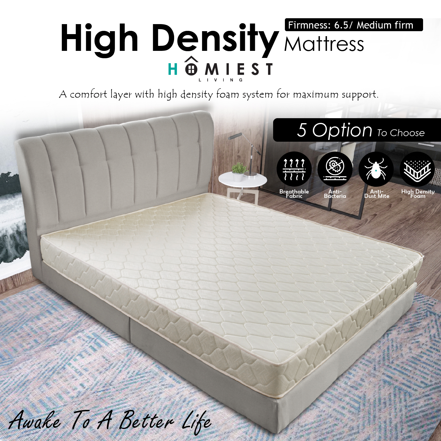 (Miễn phí cài đặt) Homest 8 inch mật độ cao bọt nệm độ cứng trung bình/Single/Super Single/Queen Size/King Size