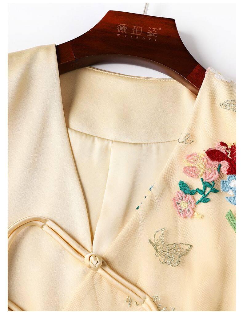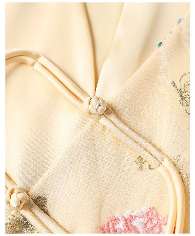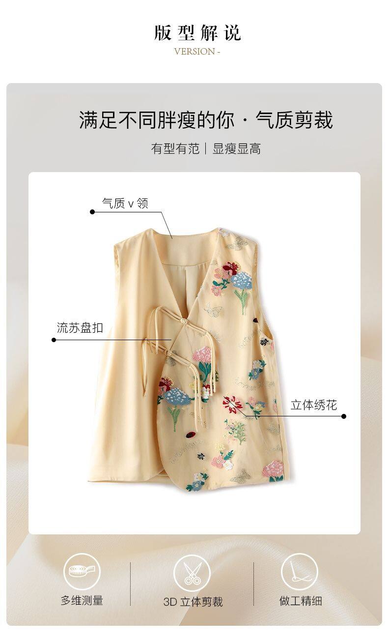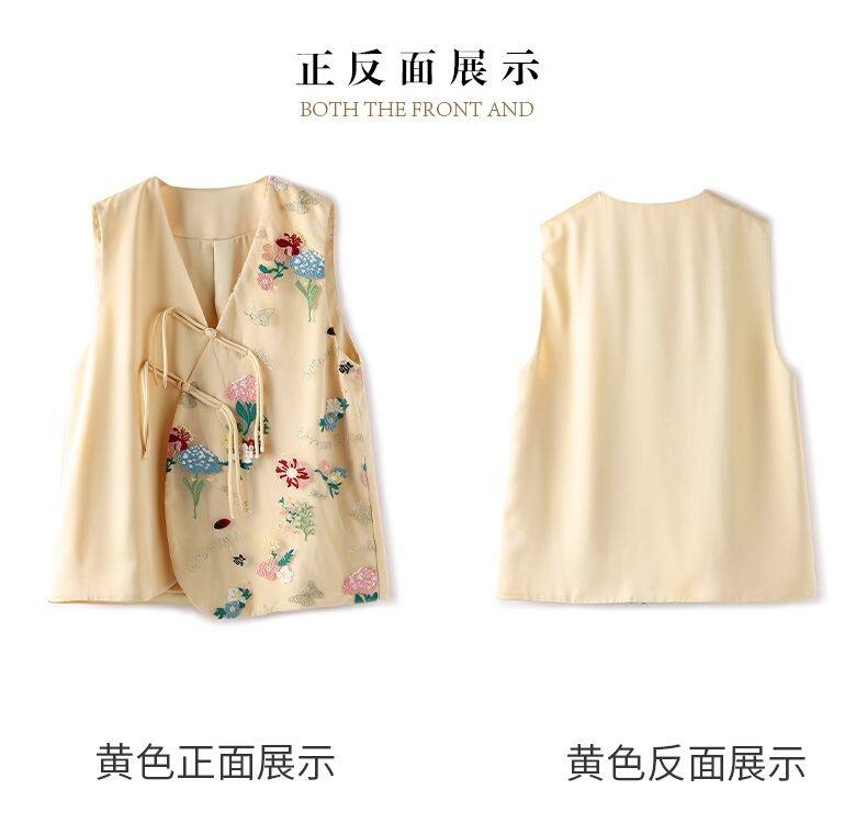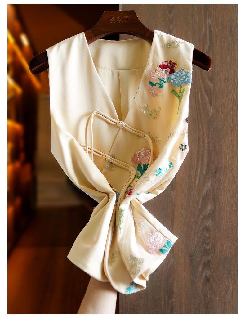 Joso Apricot Pink Senior Sense of Summer Chinese Vest Women Summer Suit Original Design Mesh Embroidery Country Tide Wind Plate Buckle Top